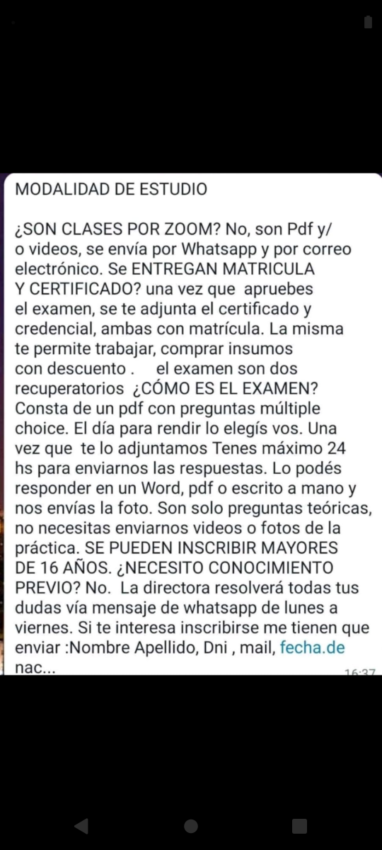 A SÓLO $80.000 PESOS PAGO ÚNICO SE ABONA UNA SOLA VEZ E INCLUYE TODO ( EXAMEN, RECUPERATORIO, CERTIFICADO Y MATRÍCULA AVALADA A NIVEL NACIONAL)